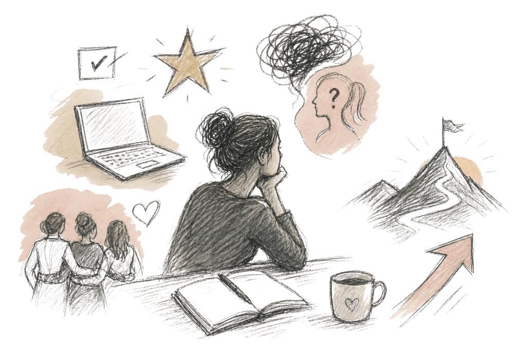 I don’t know exactly where the boundaries should sit. I don’t know what to do, in the moment, when I feel the people-pleasing kicking in or the imposter voice getting loud. There’s no tidy bow on this one.